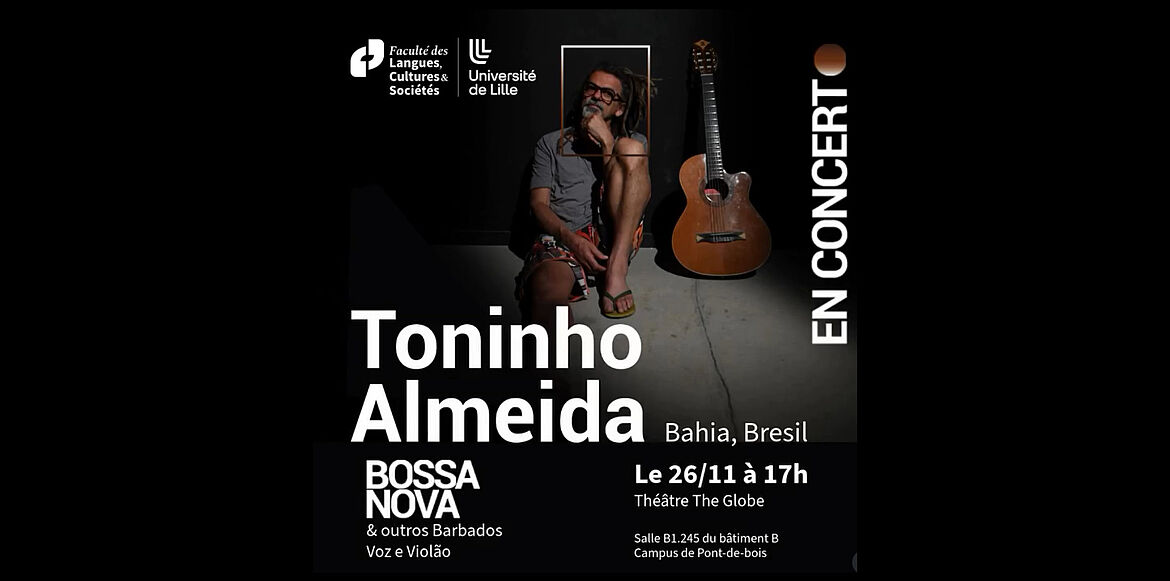 Dans une ambiance intime voix–guitare, l’artiste présente un répertoire de bossa nova et de compositions marquées par les sonorités de Bahia. Un moment musical chaleureux qui dialogue avec l’exposition et prolonge les échanges culturels franco-brésiliens.